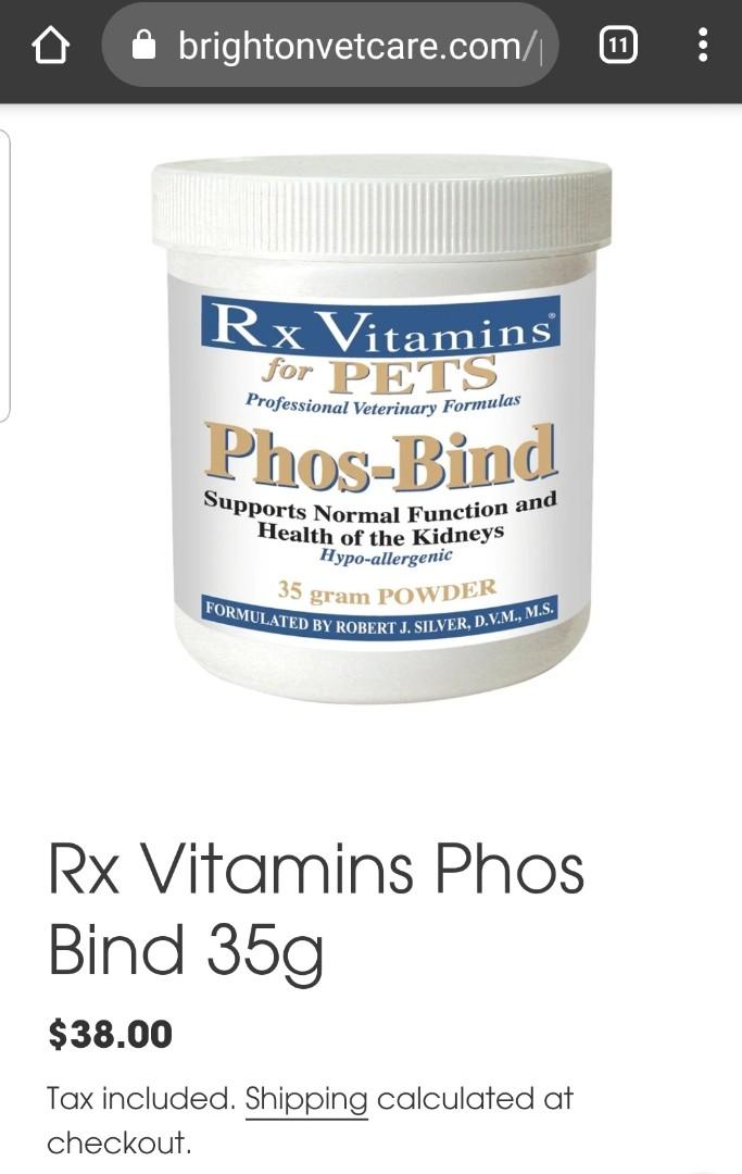 Rx Vitamins Phos Bind Kidney Cats Dogs 35g Pet Supplies Health Grooming On Carousell